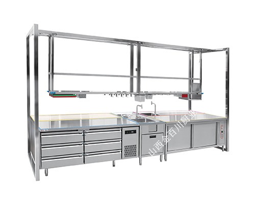 山西金百川廚房工程廚房設備裝置流程不銹鋼廚房設備的分類貯藏用具它首要分為食物、用品兩類。食物貯藏分為冷藏和非冷藏,冷藏無外乎便是廚房內的電冰箱以及冷藏柜等,非冷藏便是一般的食物區(qū)域冷藏。物品貯藏便是一般的器皿貯藏,可以分為餐具、炊具等。為這些常用到的器皿提貯藏空間,也便是經過各種儲物柜、底柜、吊軌、角柜等完成的。洗刷有很多種,除了供水方面需求有冷熱水供應體系之外,在排水設備、洗槽、洗物柜等都是要有所考慮的。